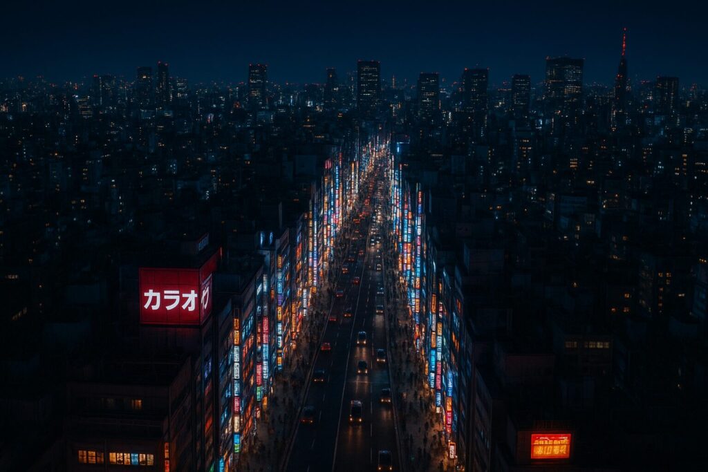 新宿のネオンがまばたく深夜。